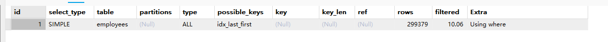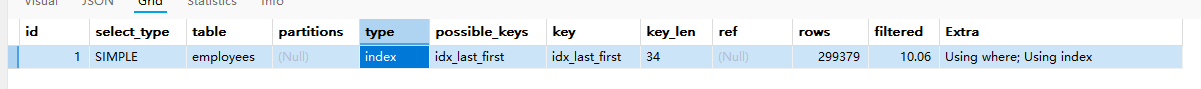 - 在第一种情况是,只查询了 last_name 和 first_name,而这两列都包含在索引当中,所以优化过后直接扫描索引更快